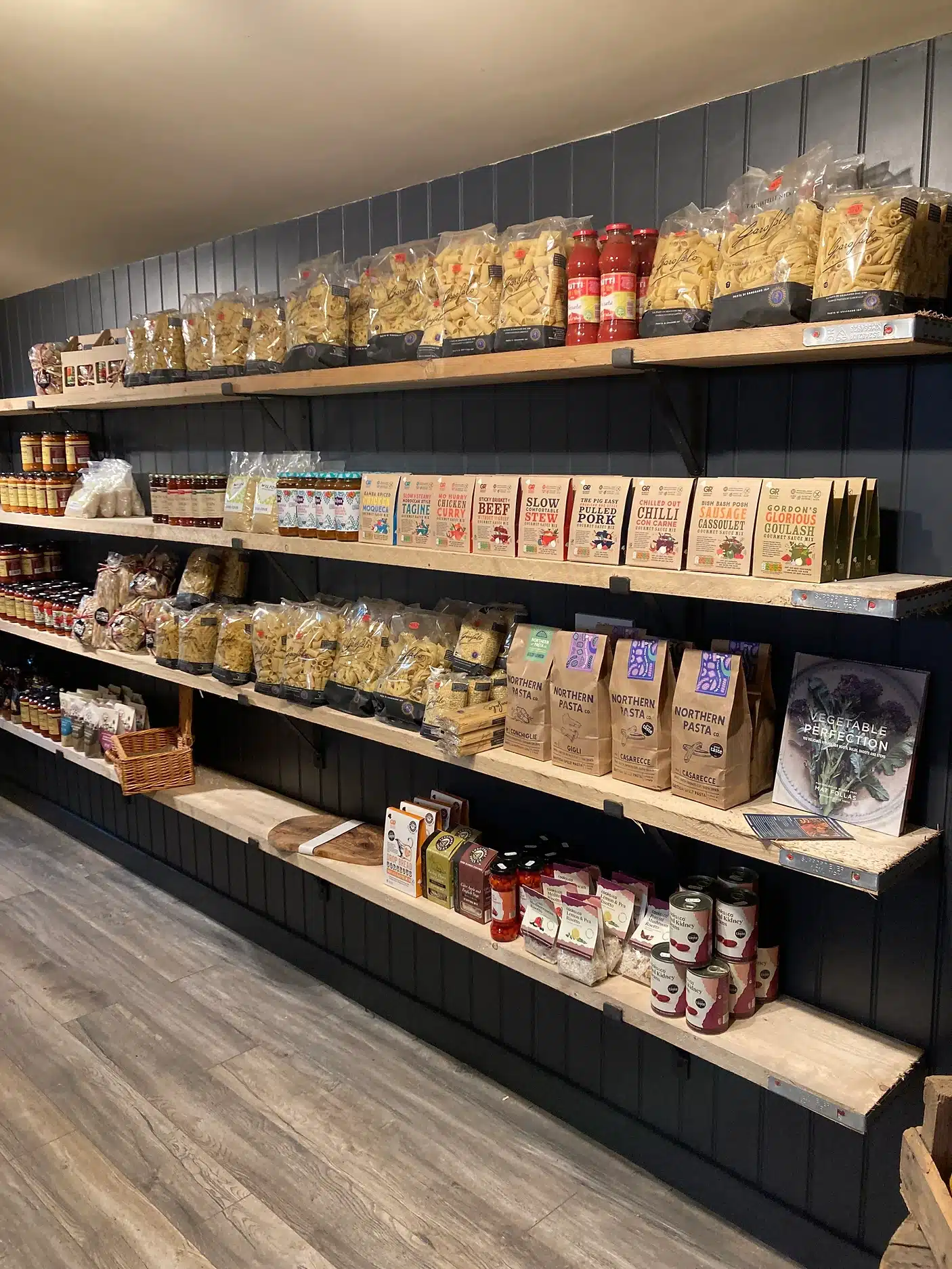 As well as meat, fresh fruit and home grown vegetables, we stock this produce locally;